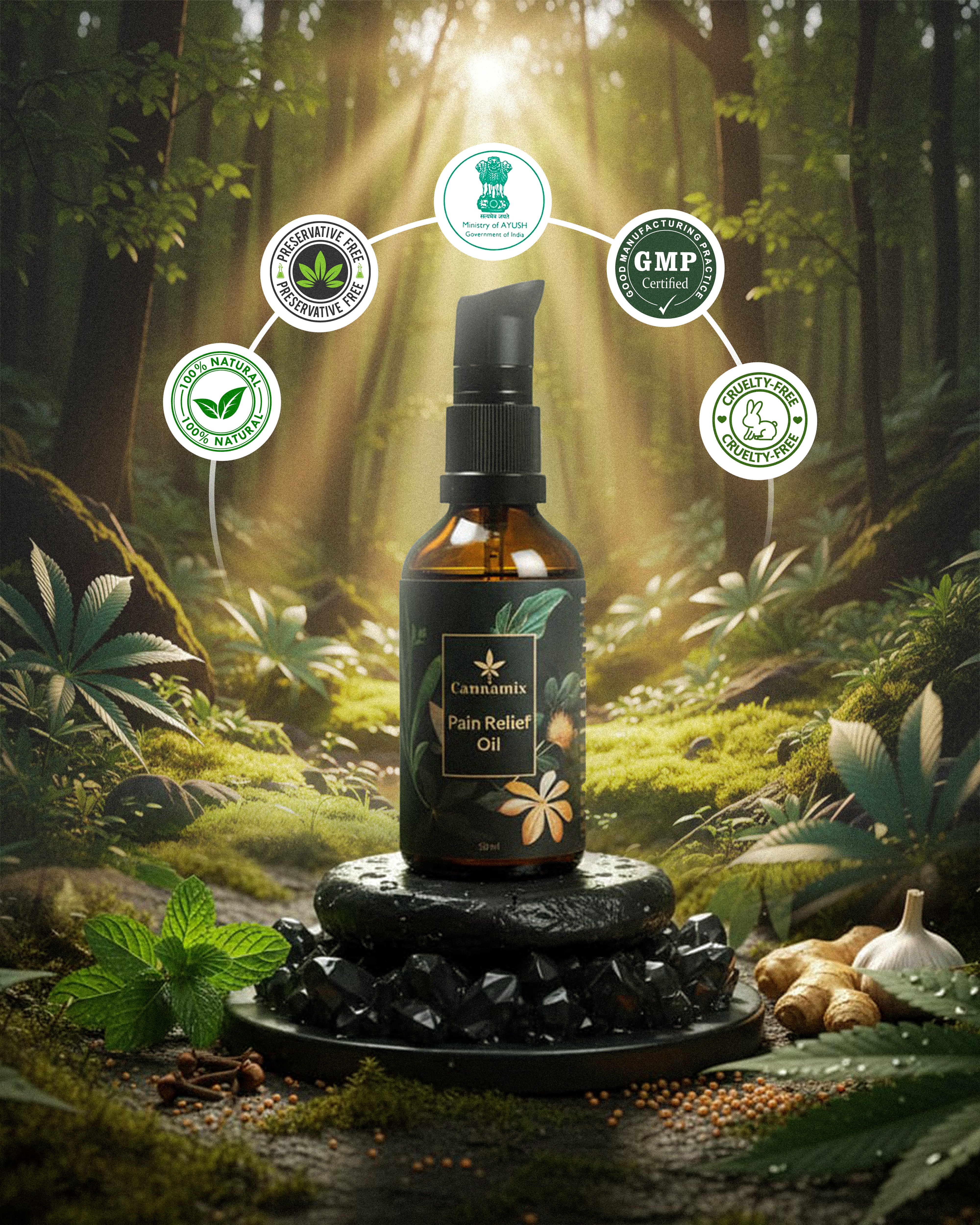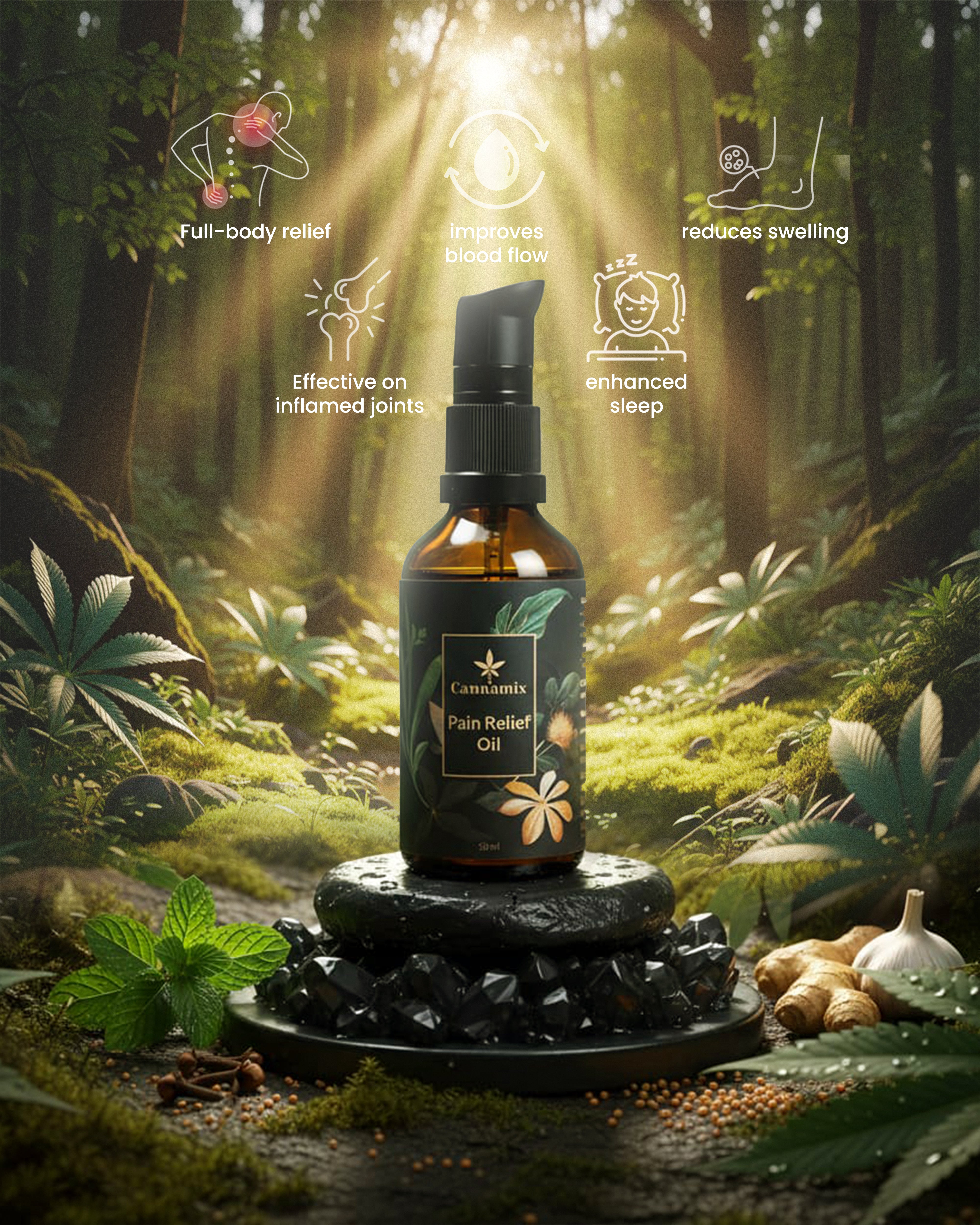 Cannamix Oil blends modern extraction techniques with traditional Ayurvedic ingredients, ensuring faster, deeper, and non-sticky relief.
